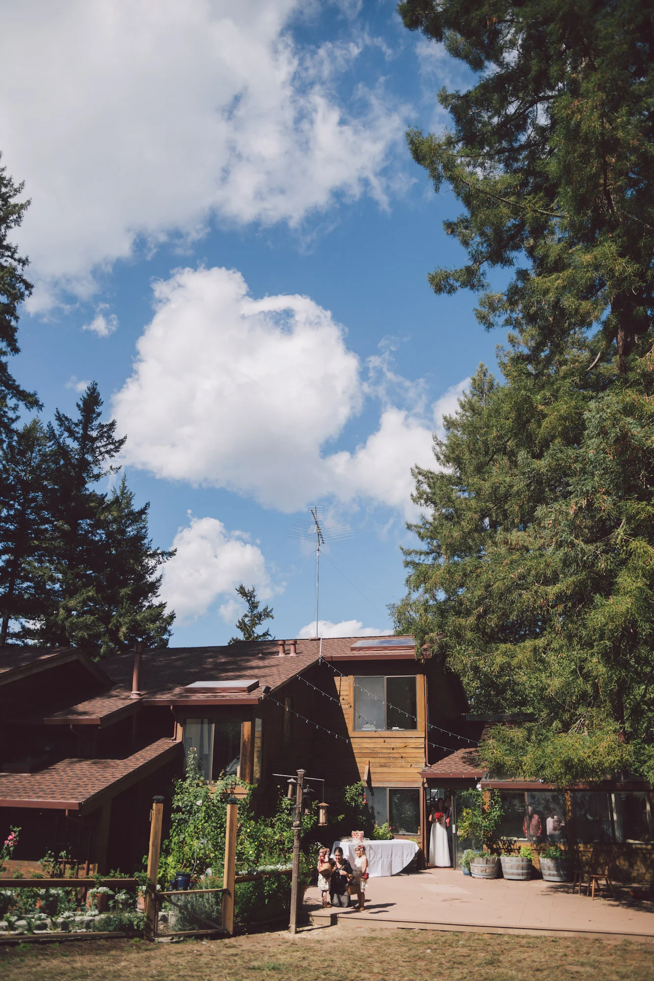 The details of the wedding were already breathtaking - Mere and Cora tied the knot on a friend's property, a series of homes and outbuildings nestled in a secluded redwood forest in Los Gatos. Mere's white suit and Cora's white dress were set off beautifully by their classic red rose boutonniere and bouquet. Their fierce and funny flower girls wore crowns of flowers and ribbons in their hair. By the end of the night, everyone was either eating peach pie out of tiny mason jars in front of the campfire or dancing to the greatest girl power playlist ever (think Girls Just Wanna Have Fun and Dancing Queen). Which is all just to say that this wedding would have been gorgeous no matter what. Add in the overwhelming love shared between the brides and their guests and the day was transformed to pure magic.