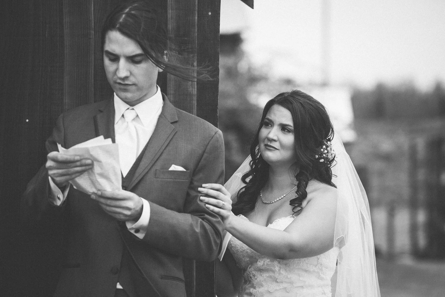 Honestly, it was difficult to put together this blog post because I wanted to include ALL THE PICTURES. Not just the incredible grins and hugs and ridiculous expression or the sweet, purple-tinged DIY details, but Ashley flipping off the tractor that decided to drive right through the background of their portraits or the guests of all ages rocking out to the Macarena during the reception. (Don’t worry, I actually did include all of that stuff.) The windy winter weather made for perfect lighting and dramatic veil-blowing and even the sudden cloudburst didn’t seem to bother Ashley, Sean or any of their guests one bit. Everyone was beaming, everyone was laughing, everyone was thrilled to see these two lovebirds get married. Even their dog, Harley, who made a perfect flower girl.